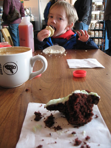We ran down to Ballard, which is where the big marina and the Hiram M. Chittenden Locks are at, and partook in some cupcakes! With frosting!